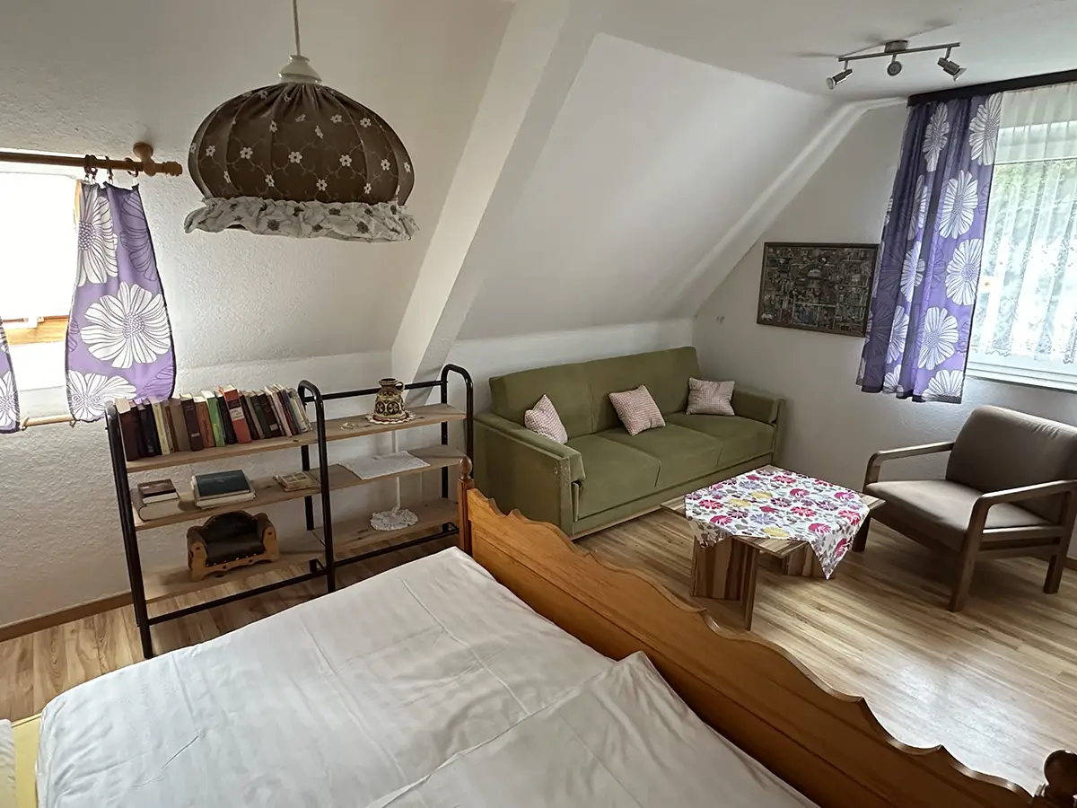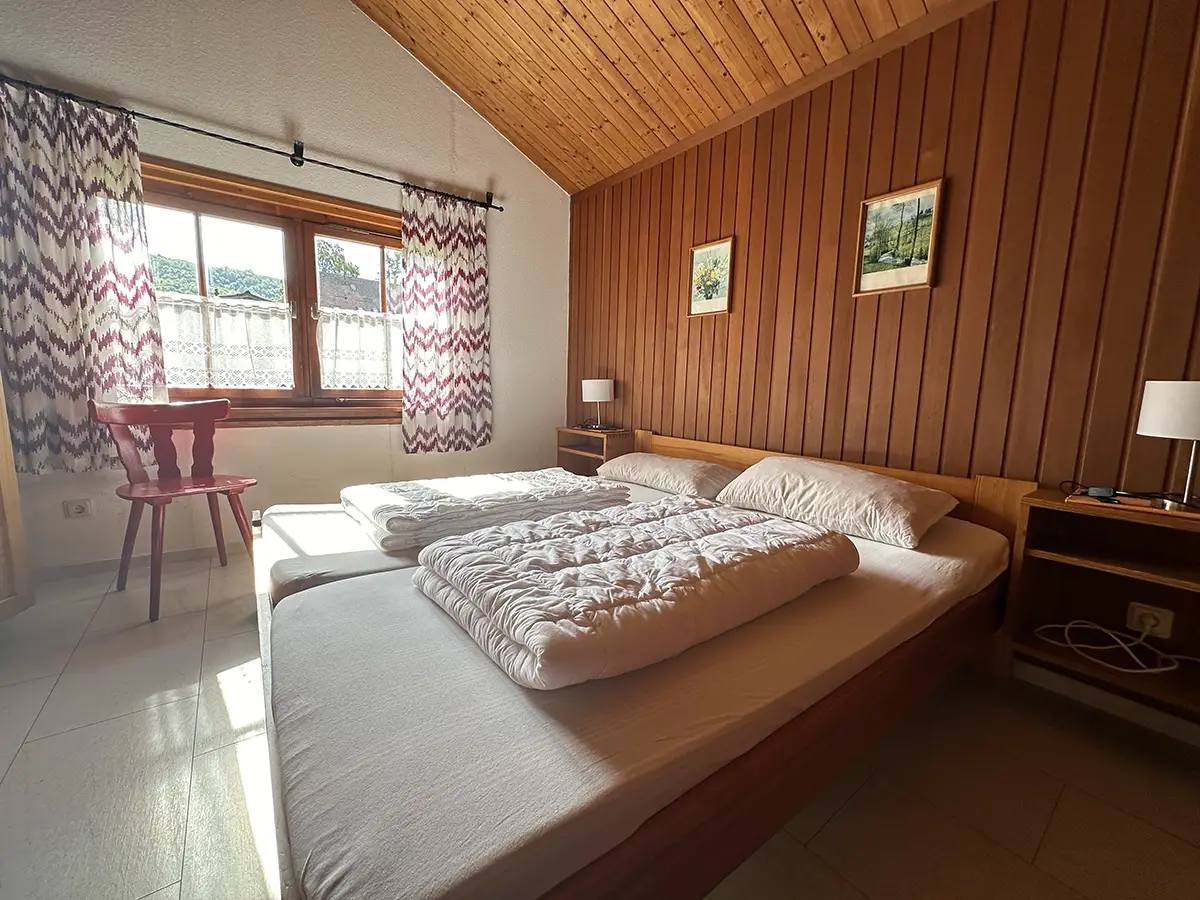 Im Dach des Wirtschaftsgebäudes sind die Zimmer im 1. Stock untergebracht.