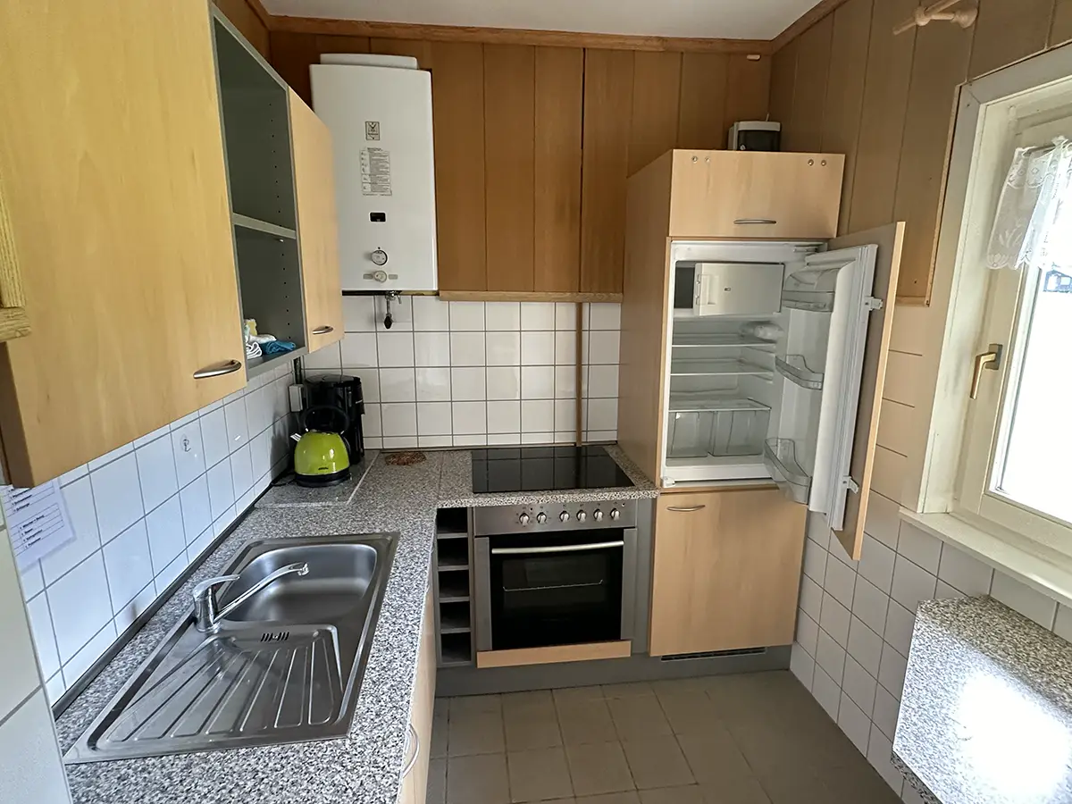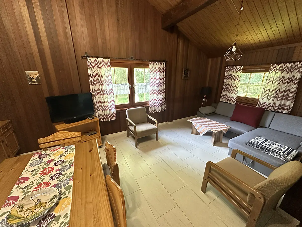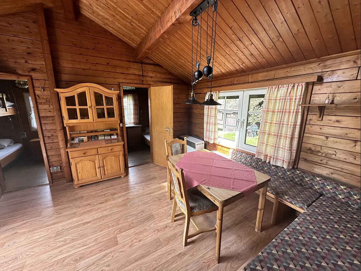 Das Menzelhaus verfügt über einen gemütlichen Wohnraum mit zwei Stapelbetten. Eine Essecke im Wohnzimmer und eine Küche ergänzen die Ausstattung. Der Schlafraum verfügt über ein 140 cm – Bett.